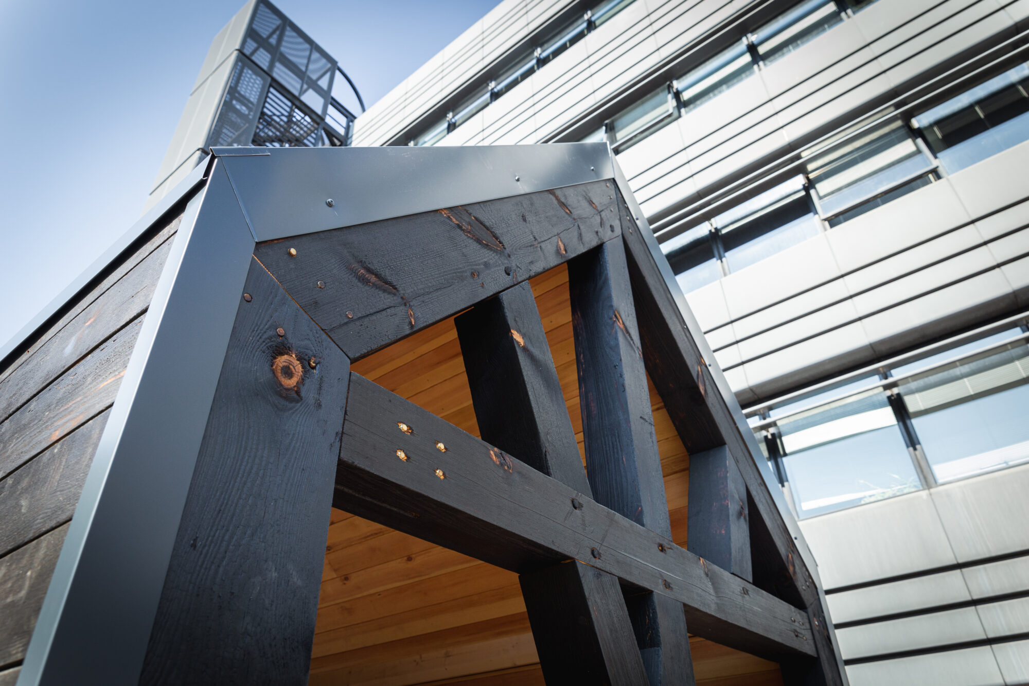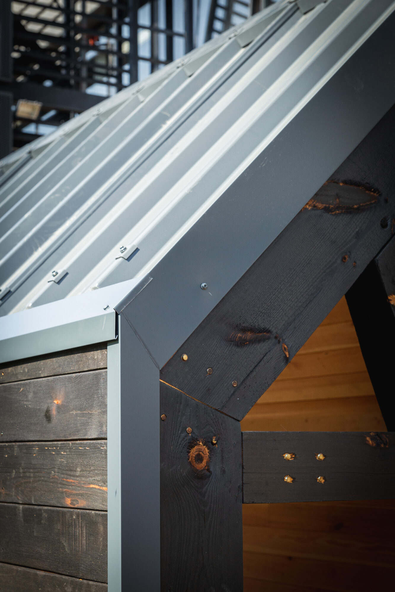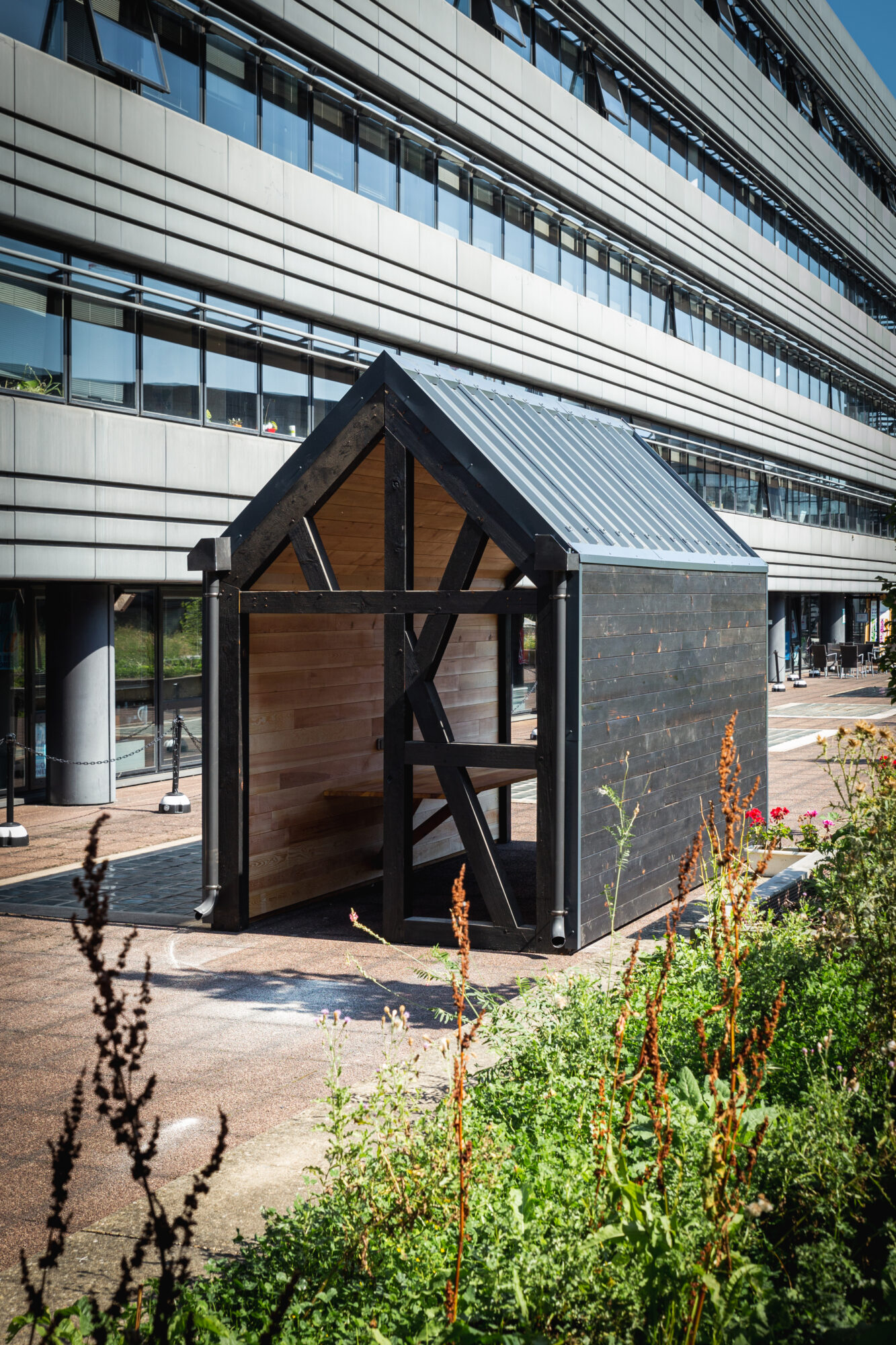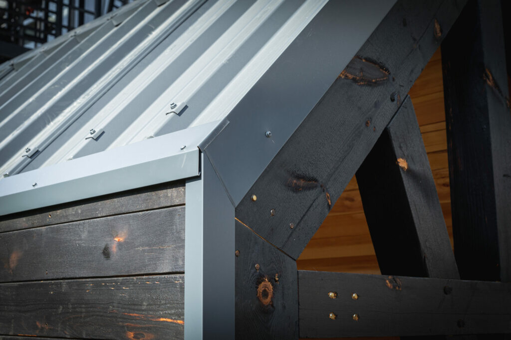 Deux modules D’woch ÜTE ont été livrés avec une finition en pin brûlé et une toiture en bac acier anthracite.